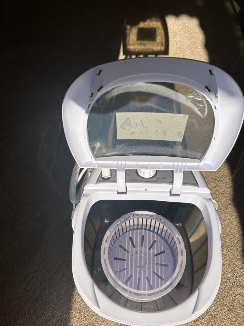 This is a small washing machine, which is very convenient for washing summer underwear. It is small in size, made of plastic material, and is light in weight and easy to move. There is a time selection for washing, and the clothes are washed clean. Small-capacity washing saves water and time, and it is dry. You have to put the clothes flat when washing. The noise is not too loud. Although the machine is small, it does a good job. I like this small washing machine very much. It is durable, convenient and of good quality .