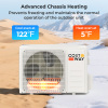 Powerful Cooling and Heating: This 11500 BTU mini split air conditioner is designed to cool or heat large spaces up to 750 square feet. The advanced chassis heating prevents freezing and maintains the normal operation of the outdoor unit. It can cool even at 122℉ and heat even at 5℉.