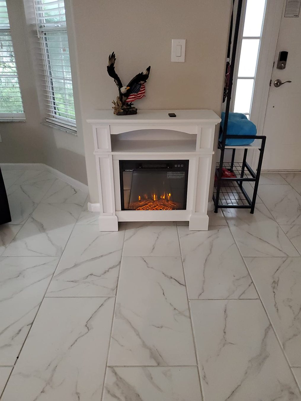 •  [Realistic Flame Effect] The electric fireplace features vivid 3D dancing flame which adds a piece of elegance to your living space and creates a soothing and clean environment for you to relax. Plus, 3-level flame brightness allows you freely adjust the flame to satisfy multiple demands.