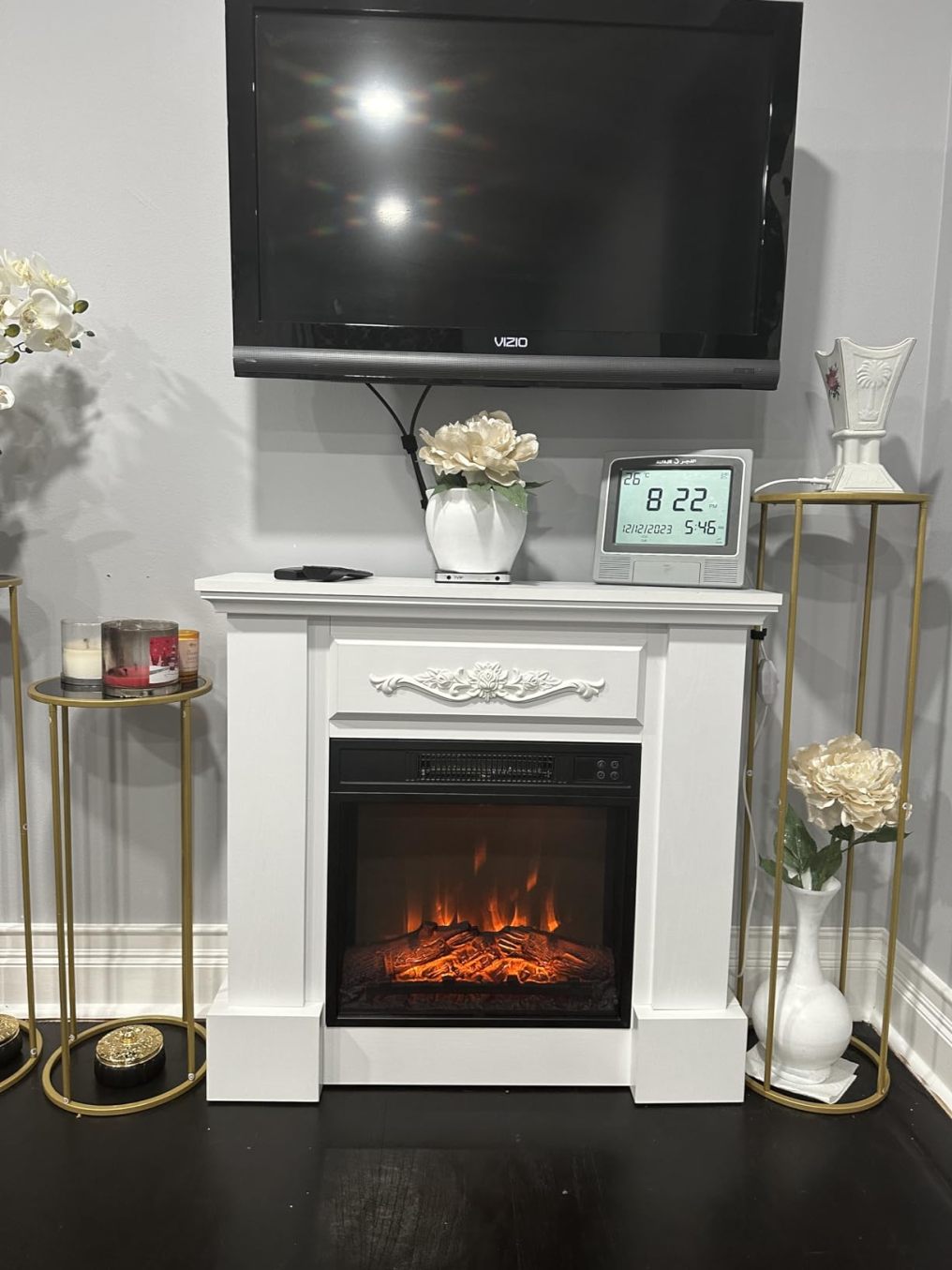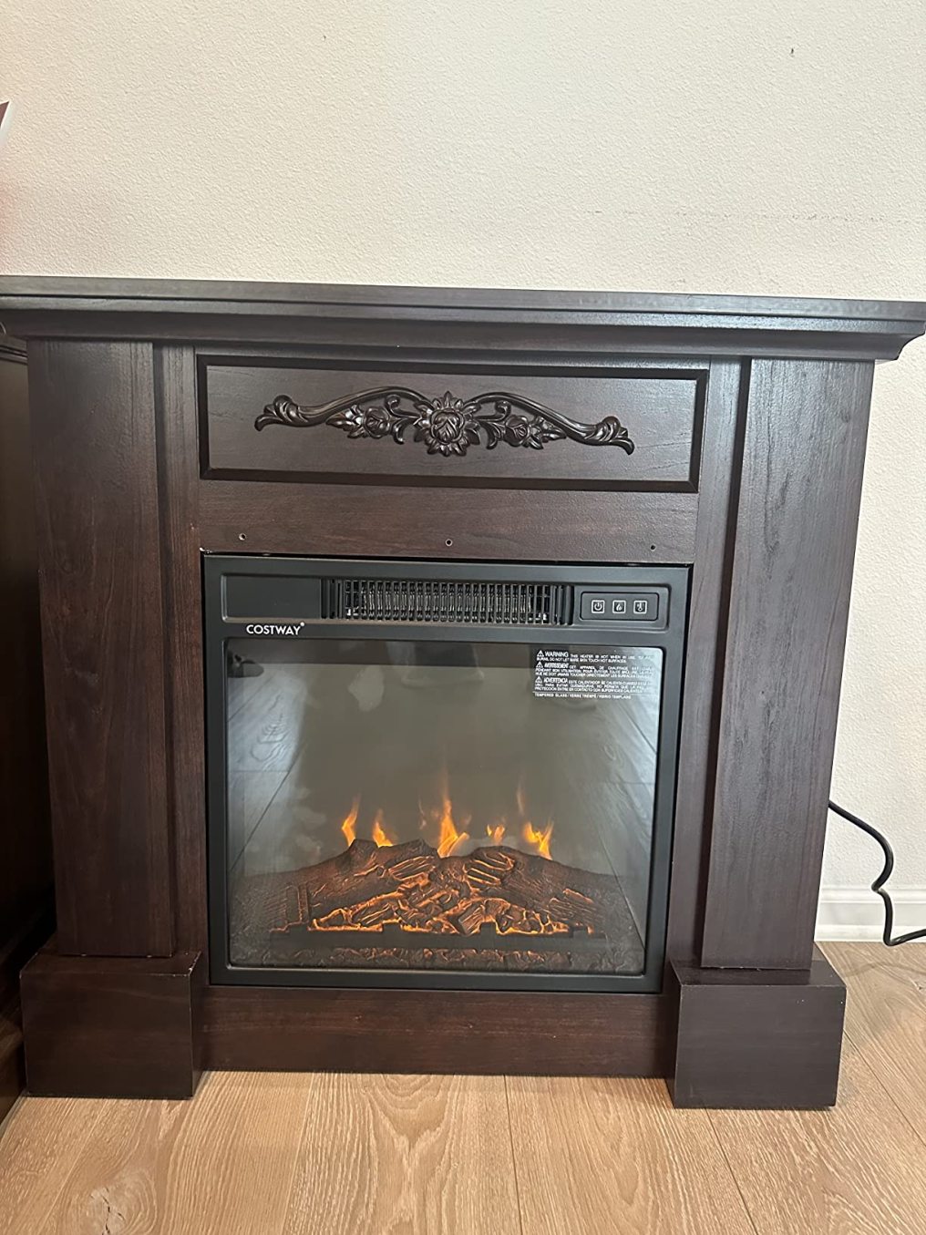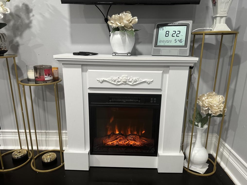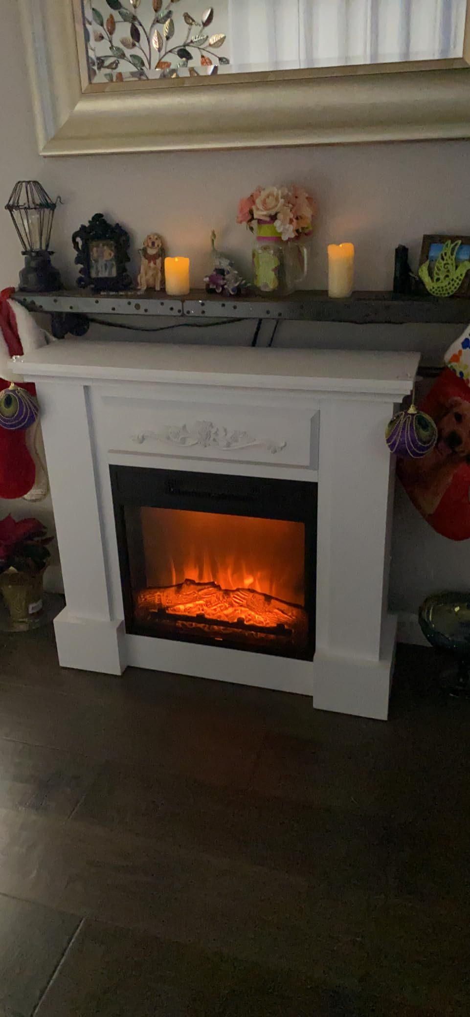 We put it in the living room and it heats up quickly and we feel warmer. And it doesn't have any noise. The 3D flames are very realistic. I really like this fireplace mantel, It’s elegant, good quality and high decorative.