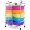 This individual 15-drawer trolley features 6plastic drawers with silver drawer handles and a sturdy caster with a sturdy, smooth metal frame.The shallow and deep drawers are made of solid, colored, transparent materials that make everything easy to see, while removable casters facilitate movement.You can keep our 15 drawer rolling trolley in the kitchen for recipes, gadgets, and napkins. Keep this organizer tools in your office for documents, mail, and other supplies.This portable storage cart can also be placed in a garage or workshop to store tools, screws and other hardware. It is also ideal for classrooms where art and crafts are stored in a simple place.You can even use it in retail Settings to sort inventory items or paperwork.15 rolling storage cart with multicolor scheme is sure to suit any decoration, it can satisfy your needs and serve you for a long time, and I can't think of any reason to refuse to own it!