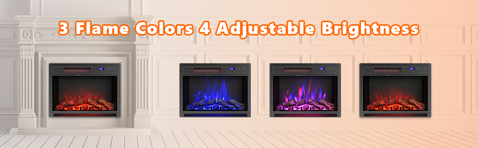 • Realistic flame effect with 3 flame colors and 4 brightness