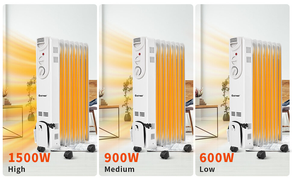 • Instant Heating& Adjustable Thermostat: With 3 heating settings (600w/900w/1500w), this oil-filled radiator heater can custom temperature settings to maximize efficiency and warmth. This oil filled space heater can support a large room up to 250 sq.ft. since it heats up quickly and efficiently, and is maintained for a longer time. It is a perfect choice for cold winters to improve your quality of life.