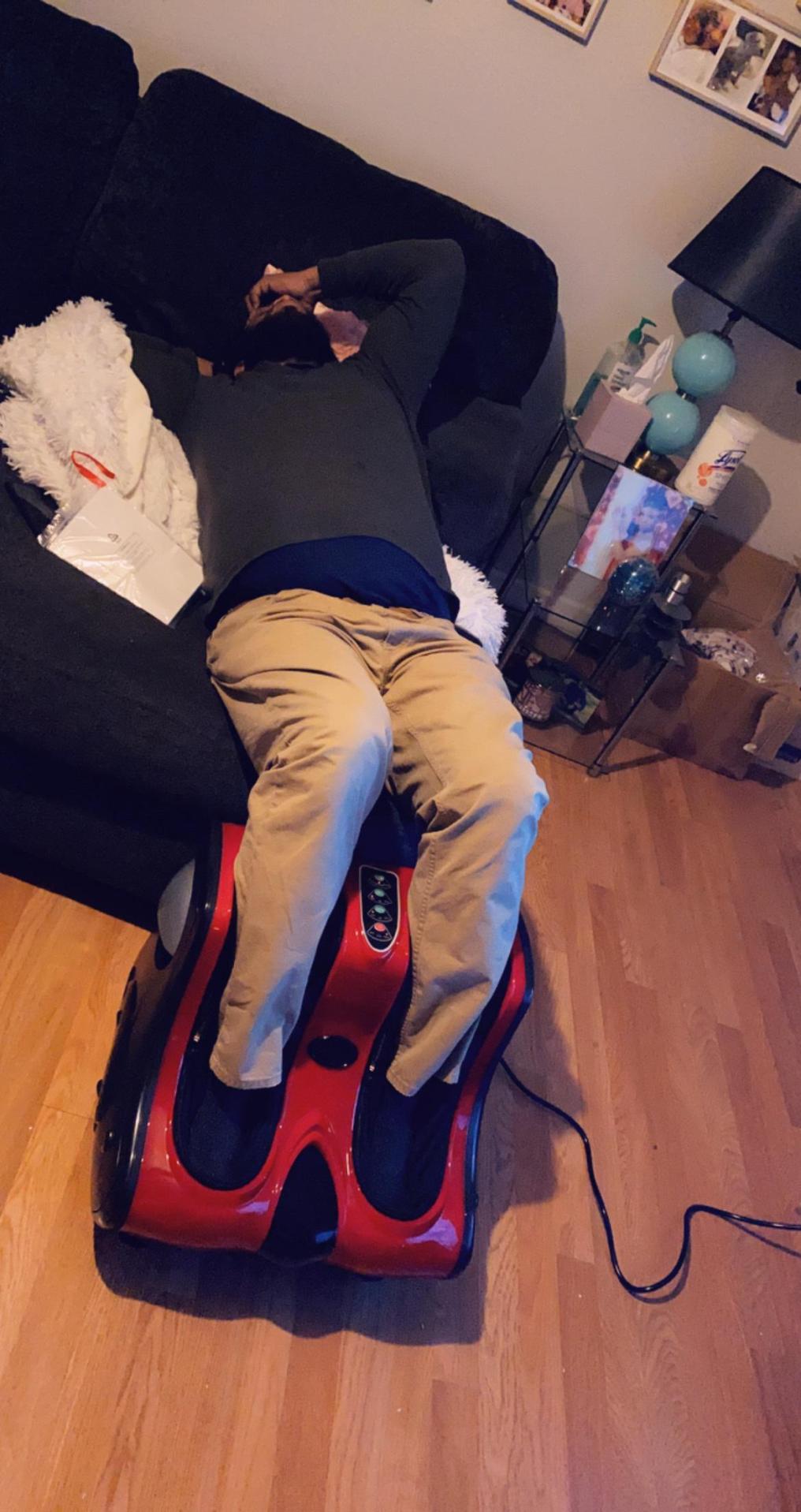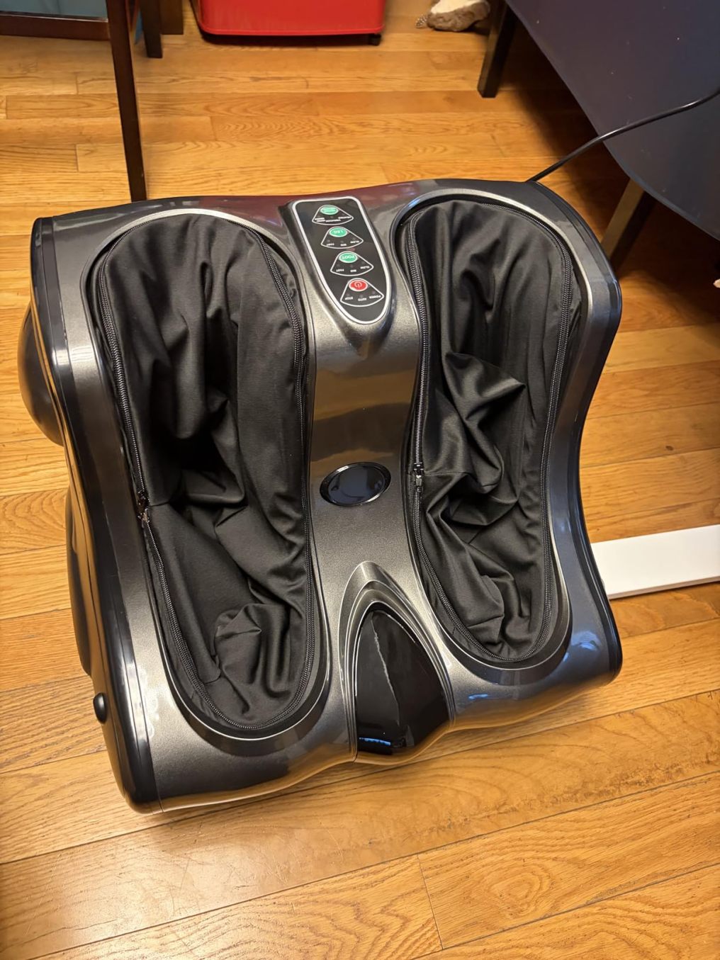 This foot and leg massager has been a wonderful addition to my daily routine. The massage is strong yet comfortable, and it does a great job targeting the soles, heels, ankles, and lower legs. The air compression feels very soothing, especially after a long day of standing or walking.