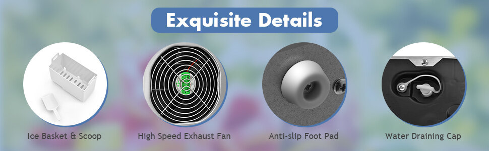 - 【12-MONTH WARRANTY & LIFETIME TECH SUPPORT】- All of our ice machines are covered by a 12-month warranty and lifetime tech support. Each portable ice maker is equipped with an ice basket and an ice shovel. Please make sure that these accessories are fully equipped when you receive it, and if there are any missing, please contact us. Easy and fast replacement is guaranteed.