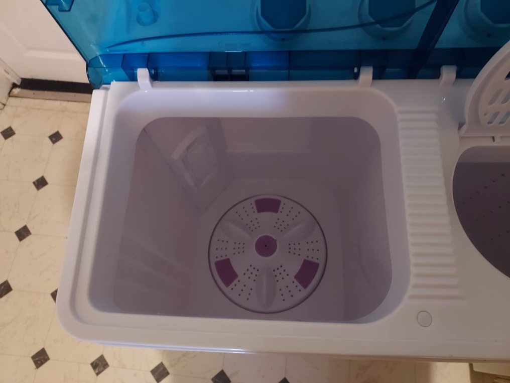 - 26 LBS Twin Tub Design: With (18 lbs) washer and (8 lbs) spinner, the twin tub washing machine saves you time as the 2 tubs can work simultaneously or separately. There might be test water remaining. Use with confidence as we don’t sell used items.