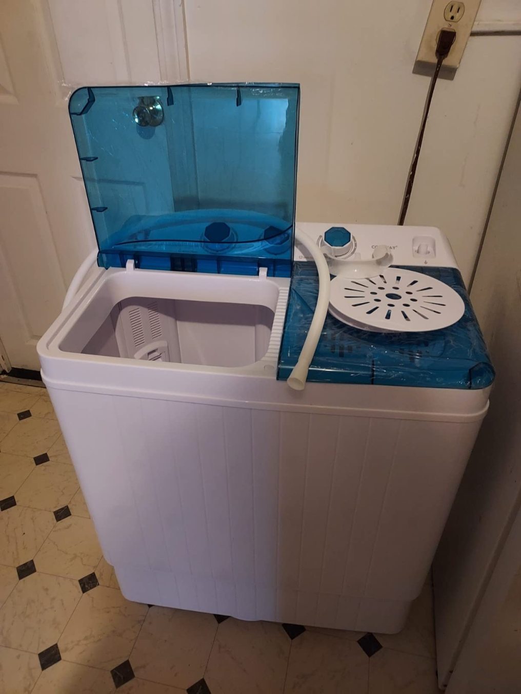 Tiny but powerful. Love my tiny washer. I live alone and this machine is great. Washes my clothes very well. Would recommend this product.