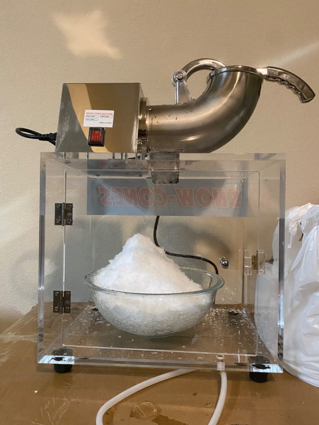 Keeps shaved ice cool in the large acrylic casing house