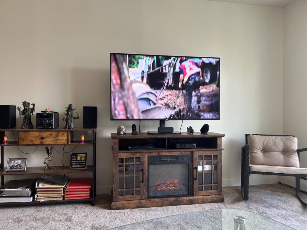 A really nice tv stand. I like the fireplace look. A decent price for the product and it showed up on time.