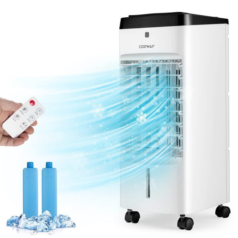 - [Large Water Tank and 2 Ice Packs] Equipped with a strong pump system, a large capacity water tank, a honeycomb cooling wet curtain and a washable filter, this evaporative air cooler can deliver cool air in seconds after you add water and ice packs to the water tank and turn on the cooling mode. Besides, 2 ice packs are included for extra coolness.