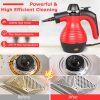 • This handheld steam cleaner comes with 9-piece accessories.