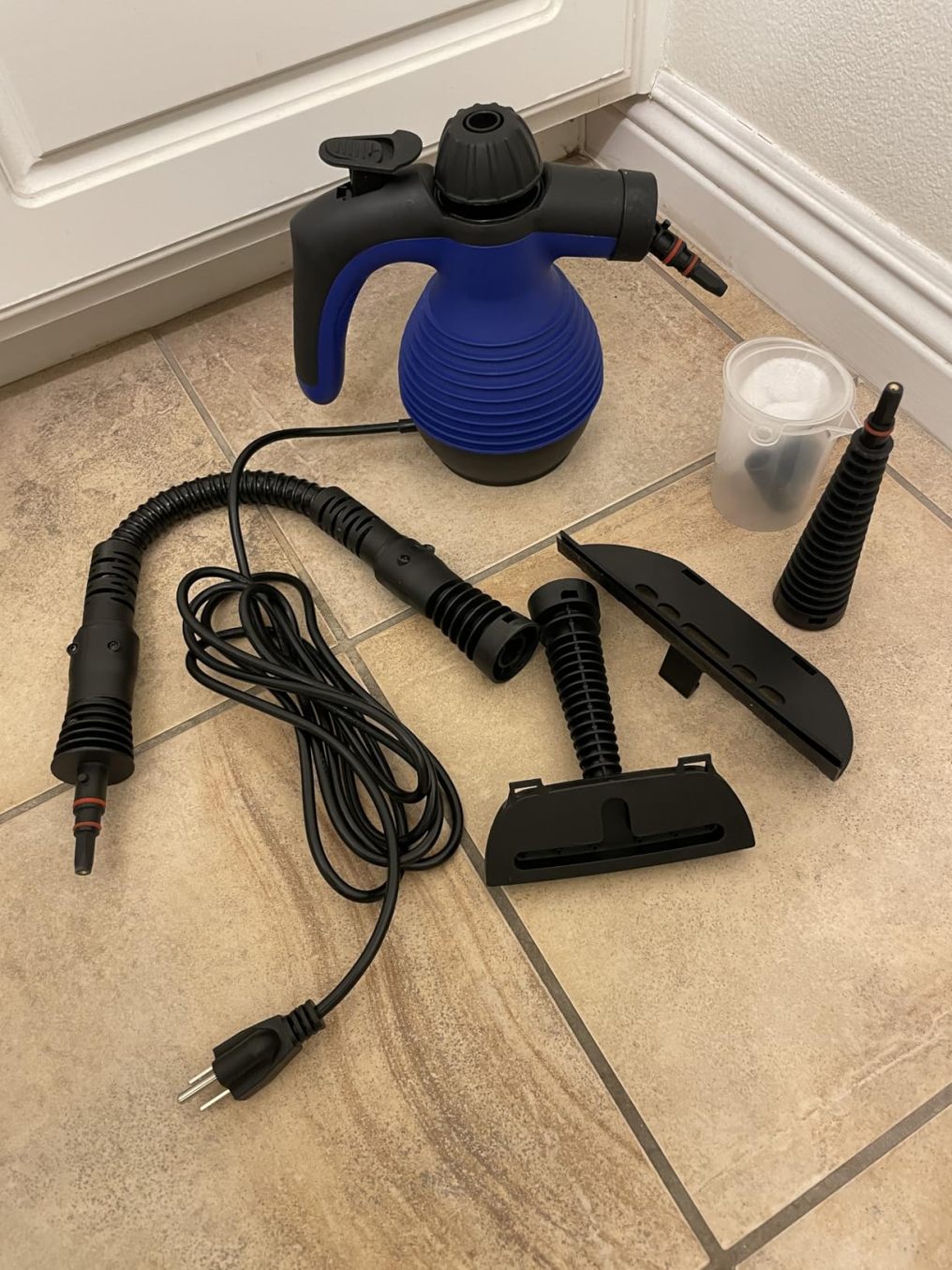 This steamer comes with different pieces to help steam all types of corners and surfaces. The cleaning power is amazing. No water leaking issues. It is easy to switch the different pieces. The cord is long so you can have a good range to steam what you need. I am very content with this purchase!