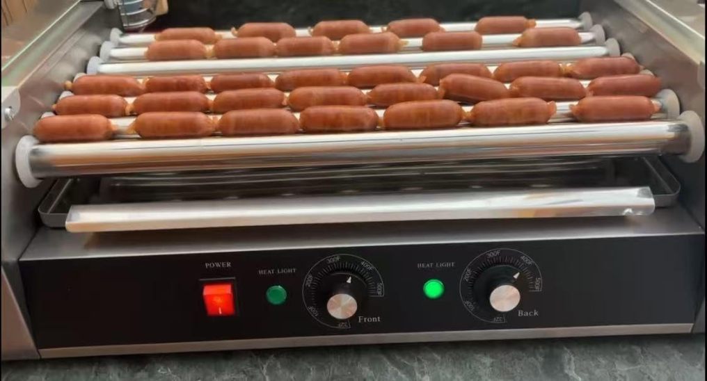 【Full Roller Rotation Of 360 Degrees】 -- This hog dog grill has 11 rollers which can rotate a full 360 degrees to cook all items uniformly. It lets you make great tasting hot dogs, kielbasa, sausages, egg rolls.