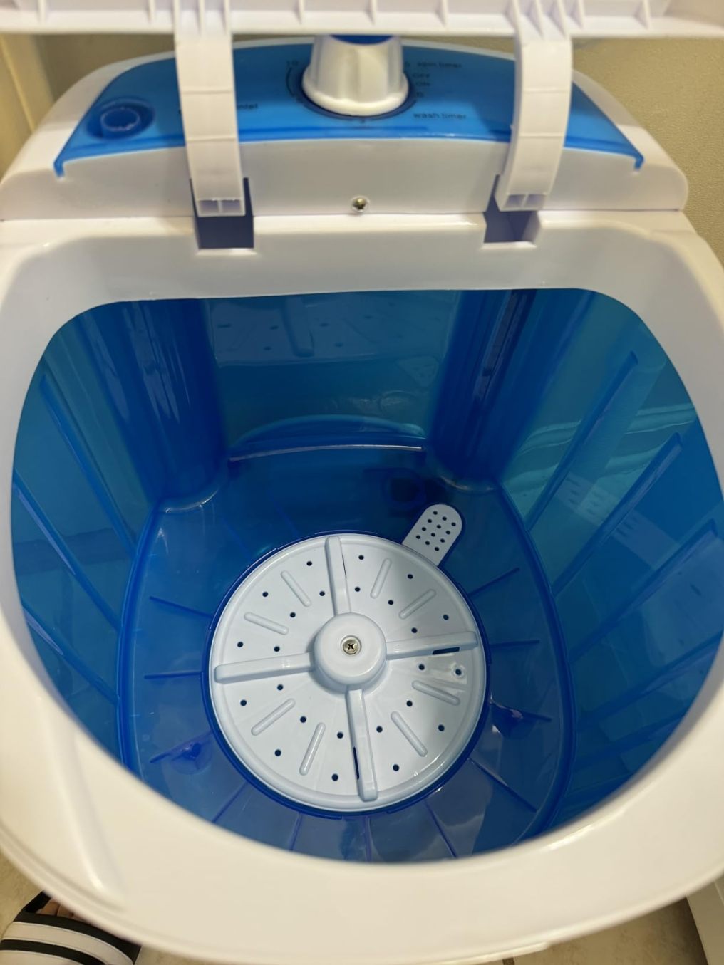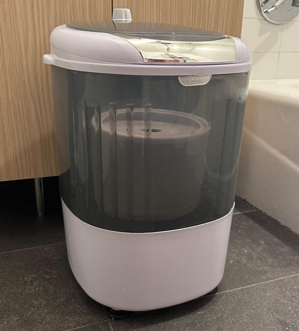 Super adorable mini washing machine. Its super lightweight and compact. Handle on both side helps easy to move around. Its 2 in 1 wash and spin dry. The non-slip foot pads helps to keep it stable not moving around when use. We use it for small laundry like socks and underwear. Super handy especially for summer, after pool we use it to wash and spin dry our wet swimsuit. Very handy and versatile. Love it.